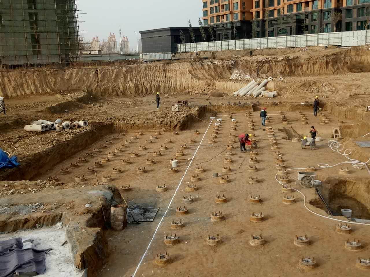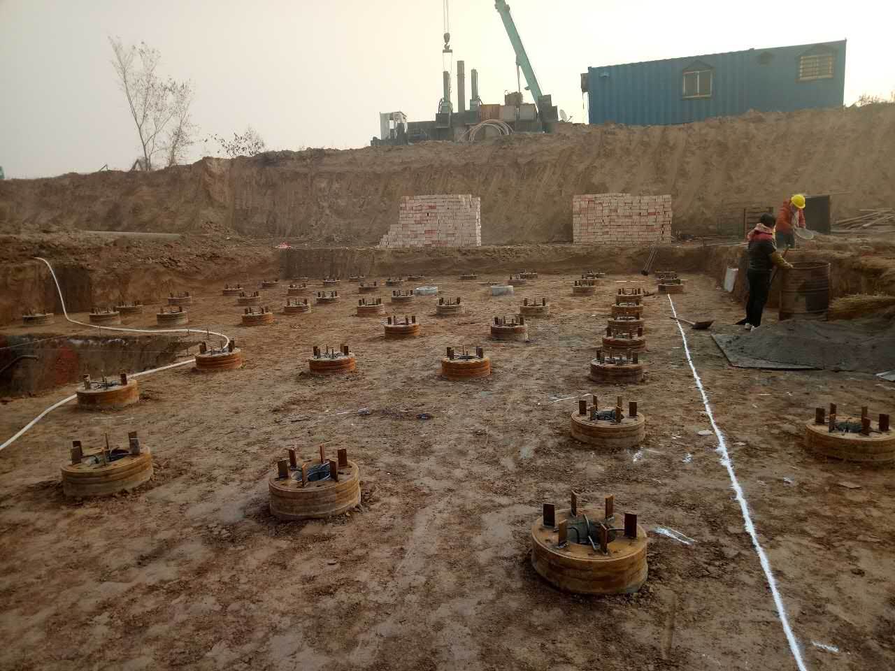 侯马建邦集团80MW煤气发电项目空冷岛预应力管桩施工现场
